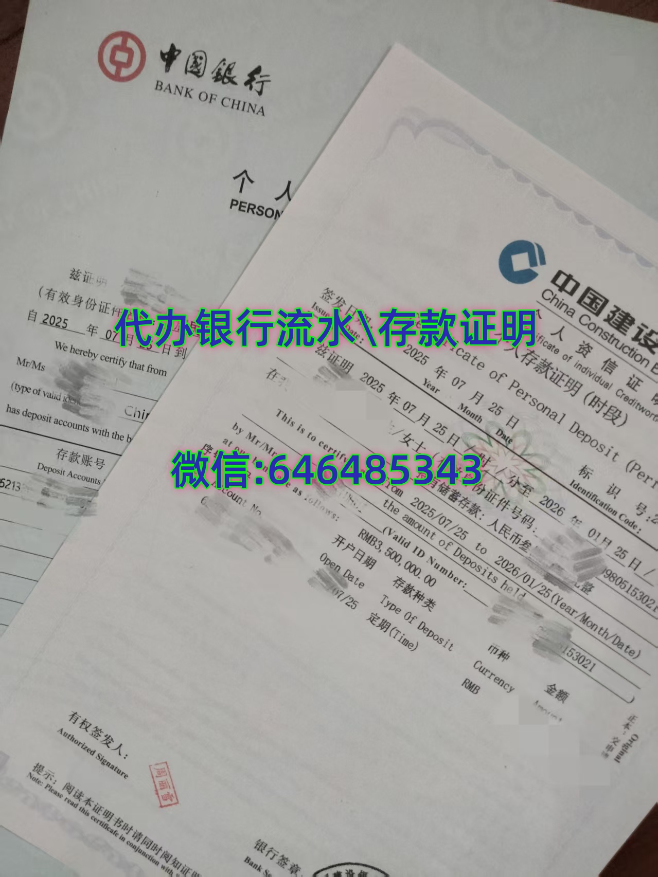 代办存款证明、办理银行流水账单业务 【真实可靠,银行内部打印】